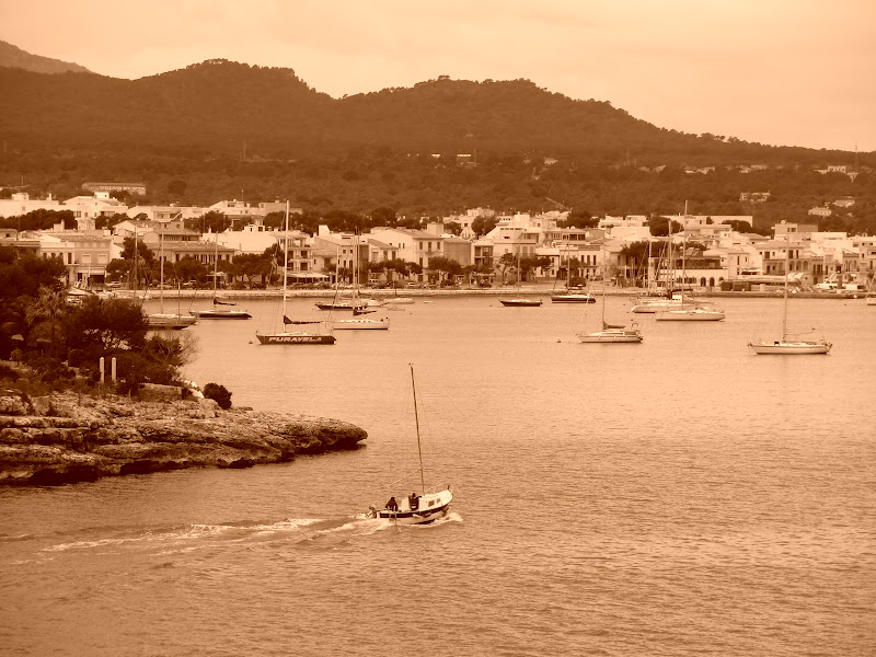Vyn in mot hamnen i Portocolom.